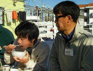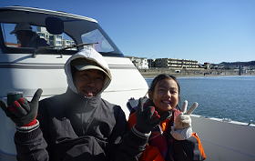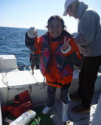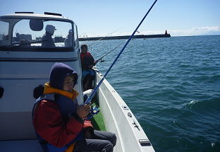 総勢20名がエントリーしてくださいました。出艇当初は北東5b程度でしたが、沖へ行くと北西の方から強烈なブローが徐々に降りてくるのが見えましたーーー。ポイントに付いたころには北西の風7〜9b、白波ガ〜・・・。少々ハードなのでと、ポイント変更。湾内へ戻り準備万端!!のはずが・・・残念ながら潮が良くなかったようで、芳しくない釣果。『これも釣り!』と割り切っていきましょう!?ちなみにこの日は周辺の貸しボート屋なども大苦戦の1日だっだようですよー。
